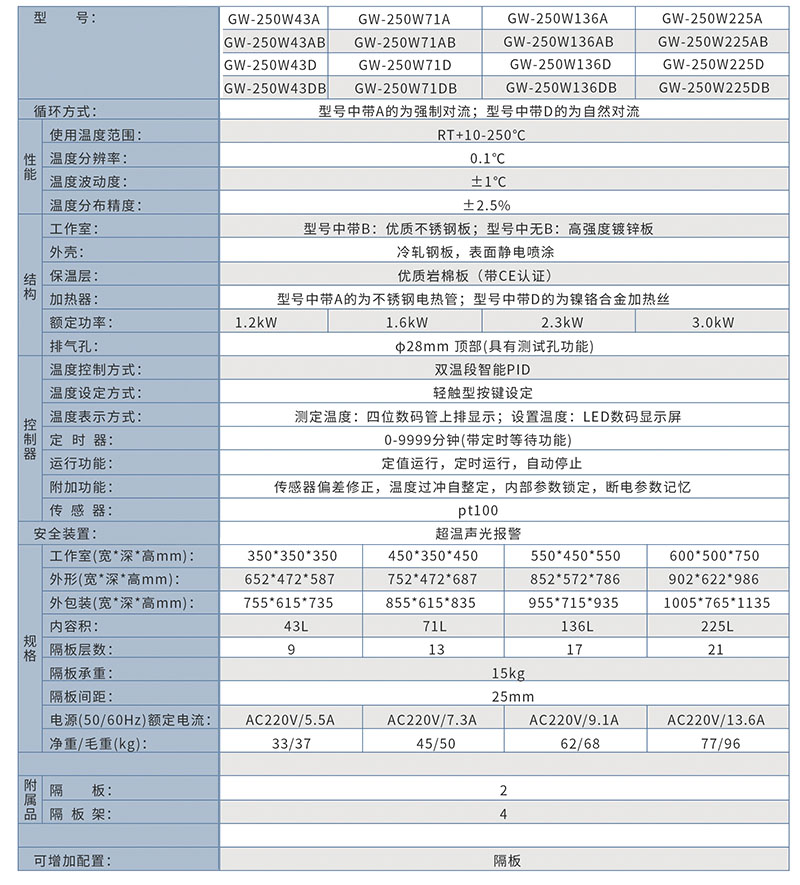 GW-250W71A鼓风干燥箱